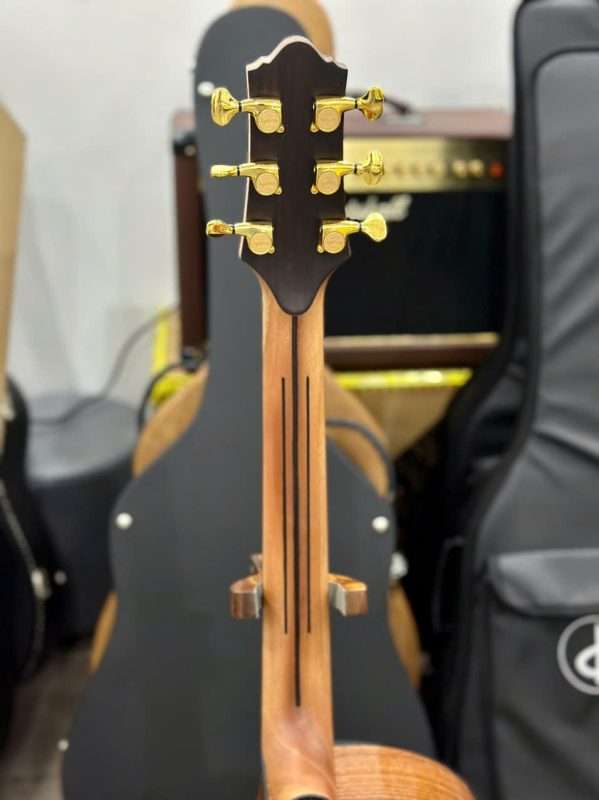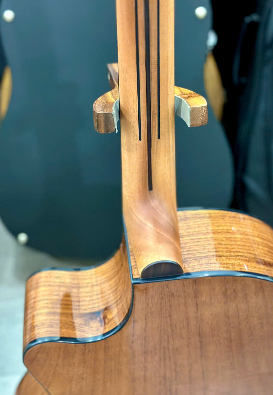 - Cần đàn gia công theo công nghệ của Mỹ, sơn mờ dễ di chuyển, thiết kế tháo lắp được khi di chuyển xa hoặc thay thế khi chẳng may hỏng hóc, đặc biệt cần được gia cố thêm 3 chỉ gỗ lim tạo thẩm mĩ đẹp hơn, cứng và chắc hơn